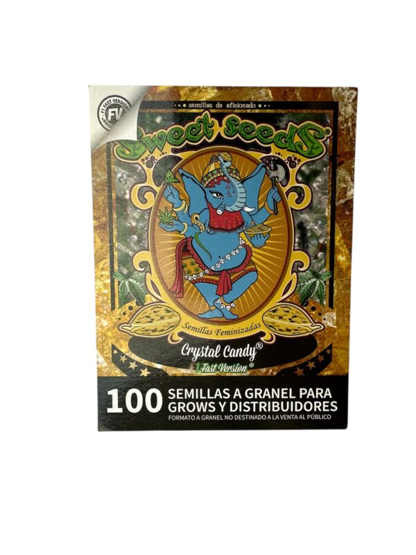 Crystal Candy F1 Fast Version es una variedad fotoperiódica feminizada de Sweet Seeds, resultado del cruce entre Crystal Candy® (ganadora como mejor índica en Spannabis 2017) y Sweet Special Auto®. Con una genética 60 % índica / 40 % sativa, destaca por su floración ultrarrápida de 6 a 7 semanas y una estructura ideal tanto para interior como exterior